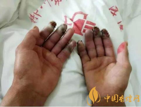 今年8月,谷某雙手手指開始出現(xiàn)間歇性疼痛。起先,他還以為是痛風(fēng),沒太在意,只是在當(dāng)?shù)蒯t(yī)院配了些治痛風(fēng)的藥。兩個多月后,疼痛明顯加劇,晚上睡覺時特別疼,整夜整夜地疼,需要靠吃止痛藥才能入睡,慢慢手指遠(yuǎn)端出現(xiàn)發(fā)黑,患者家人這時很重視,帶患者跑了三家醫(yī)院,確診為"血栓閉塞性脈管炎"。入院前,止痛藥已經(jīng)完全起不了作用,整夜都不能睡,痛得大汗淋漓,一雙手,要時時刻刻泡在冷水里面,拿出來時要用嘴巴吹風(fēng),時時刻刻抖動雙手,緩解疼痛,一副痛不欲生的樣子。