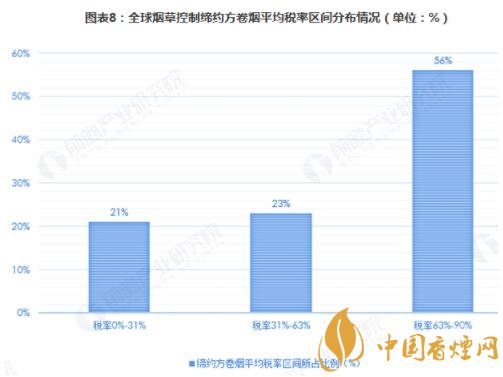 據(jù)統(tǒng)計,在全球煙草控制締約方實施煙草稅收政策的國家中,稅率在63%-90%高稅率的國家數(shù)量占到了56%;實施31%-63%稅率的締約方數(shù)量也占到了23%;31%以下稅率的締約方數(shù)量占比為21%。