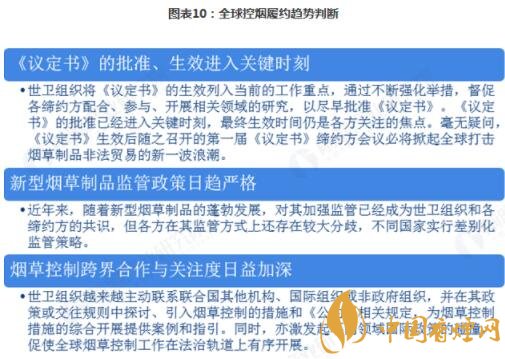據(jù)國家局、北京市局(公司)、福建中煙、國家局經(jīng)濟(jì)研究所共同發(fā)布的《2017年世界控?zé)熉募s進(jìn)展報告》判斷,目前《議定書》的批準(zhǔn)和生效已經(jīng)入關(guān)鍵時刻,未來新型煙草制品監(jiān)管政策將日趨嚴(yán)格。