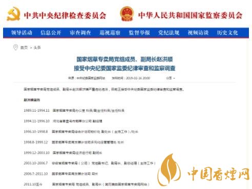 目前,國家煙草專賣局網(wǎng)站上關(guān)于趙洪順的相關(guān)新聞報道及重要講話已被刪除。