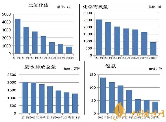 2018年與2012年相比,二氧化硫排放量由4418噸下降到889噸,降幅79.9%;化學(xué)需氧量由2532噸下降到932噸,降幅63.2%;氨氮由138噸下降到45噸,降幅67.3%;氮氧化物由4670噸下降到1417噸,降幅69.7%;煙塵排放量由1755噸下降到542噸,降幅69.1%;二氧化碳由259萬(wàn)噸下降到183萬(wàn)噸,降幅29%;廢水排放總量由2033萬(wàn)噸下降到1279萬(wàn)噸,降幅37.1%。2017年與2012年相比,有79家卷煙工廠淘汰了燃煤鍋爐,使用了清潔能源鍋爐。