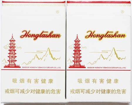 真煙選用的是白卡紙,采用凹版印刷工藝,故”經(jīng)典“二字整體筆畫較粗;商標(biāo)”紅塔山“字樣手摸上去沒有凹凸感,而且中間的”塔“字,下方口字上一橫沒有缺口。另外logo紅塔圖案左側(cè)的上下兩朵云,距離塔身較近。而假煙商標(biāo)紙除了選用的是劣質(zhì)紙張外,印刷工藝上多是采用高清掃描防印,故假煙多呈現(xiàn)以下特征:”經(jīng)典“二字筆畫較細;商標(biāo)”紅塔上“字樣摸上去有凹凸感;而且”塔“字下方口字上一橫有小缺口;logo”紅塔“左側(cè)的兩朵云距離塔身較遠。