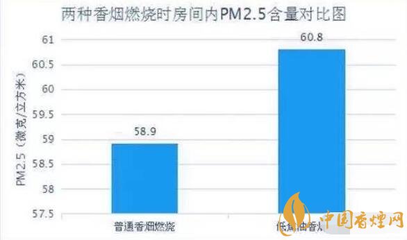實驗結(jié)果表明細(xì)支煙與粗煙危害對比,粗桿煙燃燒后,室內(nèi)PM2.5含量為58.9(微克/立方米),細(xì)桿煙燃燒后,室內(nèi)PM2.5含量為60.8(微克/立方米),均比點燃香煙之前有明顯提升。而且,細(xì)桿煙所釋放的煙草煙霧濃度,略高于粗桿香煙。也就是說,號稱“低焦油香煙”的細(xì)桿煙,燃燒后所釋放的有害物質(zhì)不低于粗桿香煙,甚至有些數(shù)據(jù)還會略高一些。#p#副標(biāo)題#e#
