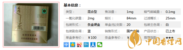超低焦油低危害卷煙代表性產(chǎn)品。“中南海(1mg)”集中草藥添加、綜合降焦、納米1+1以及復(fù)合減害技術(shù)于一身,使焦油量降至1毫克/支,卷煙危害指數(shù)低至3。下面就由香煙網(wǎng)小編帶大家來了解一下中南海超1流的相關(guān)信息。