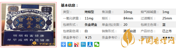 以上便是由香煙網(wǎng)小編為大家介紹的關(guān)于梅花王藍硬香煙價格及圖片 一款非常難得的臺灣烤煙的相關(guān)信息,想要了解更多有關(guān)內(nèi)容請點擊:白盒臺灣金鹿香煙多少錢一包 新版白盒臺灣金鹿香煙價格10元/包