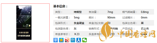 | 類型 :烤煙型 | 焦油量 :7mg | 煙氣煙堿量 :0.8mg | 一氧化碳量 :5mg |