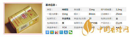 | 類型 :烤煙型 | 焦油量 :11mg | 煙氣煙堿量 :1.2mg | 一氧化碳量 :11mg |