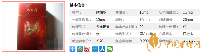 三、大紅鷹精品香煙參數(shù)