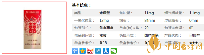 三、紅雙喜硬晶喜香煙參數(shù)
