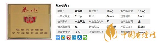 老版的三星將軍焦油量比較高,改版后的泰山將軍雖然口感確實不如三星將軍,但是即使降焦了味道也比很多20檔的煙口感要好上許多。泰山將軍煙草用料足,燃燒較慢,口感濃郁,算得上魯產(chǎn)高檔卷煙的經(jīng)典作品。下面一起來看下泰山將軍的具體參數(shù):一盒20支,煙長84mm,焦油量11mg,煙堿量1.1mg,一氧化碳量11mg。