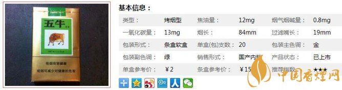 三、五牛綠香煙參數(shù)
