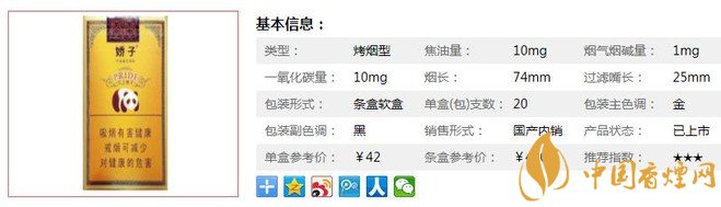 | 類型 :烤煙型 | 焦油量 :10mg | 煙氣煙堿量 :1mg | 一氧化碳量 :10mg |