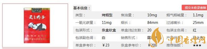 嬌子軟龍涎香韻的外包裝咋看第一眼有點像紅雙喜香煙,熊貓標(biāo)志和天之驕子的標(biāo)識格外顯眼,這樣的包裝個人覺得有些掉價,不像是嬌子的風(fēng)格。不過好在價格也不貴,口感也比想象中好些,值得老煙民品嘗一下!