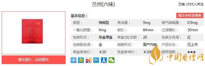 以上便是由香煙網(wǎng)小編為大家介紹的關(guān)于蘭州六味售價(jià)20元一包 慶祝神七飛天紀(jì)念版的相關(guān)信息,想要了解更多有關(guān)內(nèi)容請(qǐng)點(diǎn)擊:嬌子紅新概念價(jià)格及參數(shù) 首次采用“微笑香線”設(shè)計(jì)