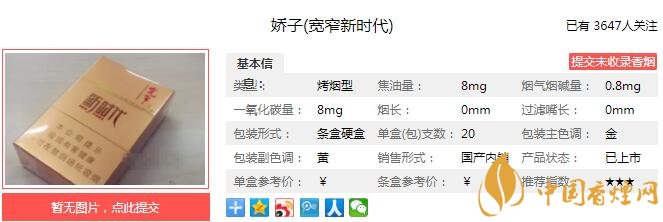 嬌子寬窄新時(shí)代多少錢(qián)一包 嬌子寬窄新時(shí)代口感及參數(shù)介紹
