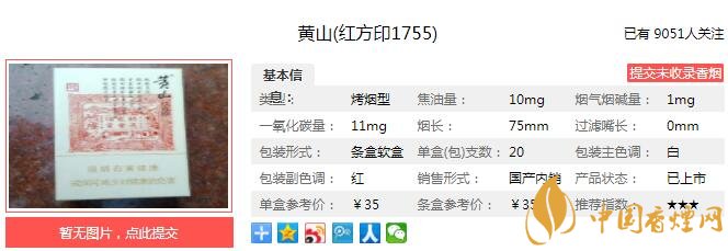以上便是由香煙網(wǎng)小編為大家介紹的關(guān)于黃山紅方印1755價(jià)格及參數(shù)介紹 黃山紅方印1755口感分析的相關(guān)信息,想要了解更多有關(guān)內(nèi)容請點(diǎn)擊:黃山六尺巷香煙多少錢一包 黃山六尺巷口感及參數(shù)介紹