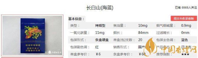 長(zhǎng)白山(海藍(lán))的性價(jià)比較高,海藍(lán)色的濾嘴顯得十分好看,抽起來(lái)的時(shí)候煙氣正好?,F(xiàn)在產(chǎn)品復(fù)出雖然無(wú)法全部找到當(dāng)年的產(chǎn)品回憶,但是焦油量還是非常值得肯定的。下面便是長(zhǎng)白山(海藍(lán))的基本參數(shù):焦油量:10mg 煙堿量:0.9mg 一氧化碳量:11mg.