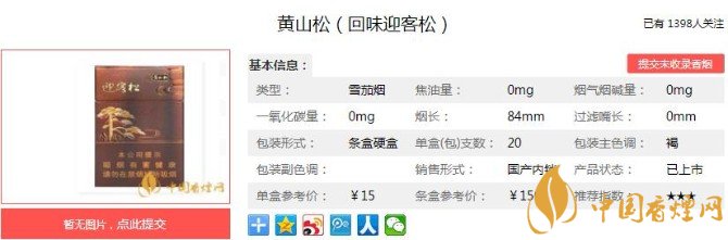 以上便是香煙網(wǎng)小編為大家介紹的關(guān)于黃山松香煙多少錢 黃山松回味迎客松價(jià)格及圖片分析的相關(guān)信息,大家看完之后是不是對(duì)于黃山松(回味迎客松)的相關(guān)信息更加了解呢,想要了解更多內(nèi)容歡迎點(diǎn)擊:黃山松回味迎客松 機(jī)制雪茄式卷煙口感測評(píng)