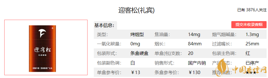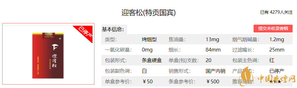 迎客松香煙價(jià)格表圖
