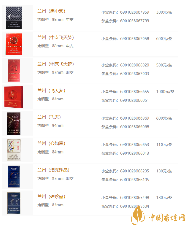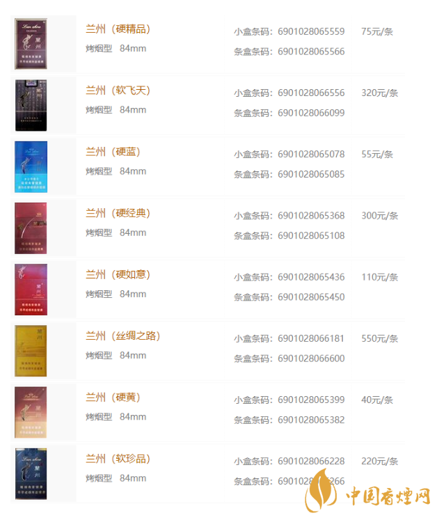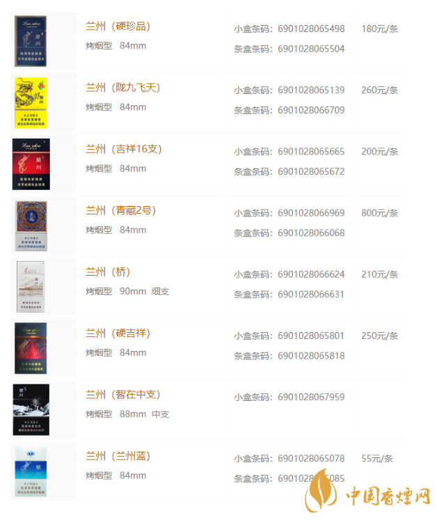 蘭州香煙2020最新價(jià)格表圖