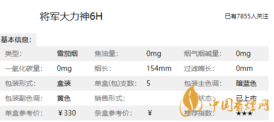 雪茄是一種象征著國(guó)際潮流時(shí)尚的香煙,國(guó)內(nèi)有很多時(shí)尚達(dá)人都特喜歡抽雪茄煙,特別是全手工制作的全葉卷雪茄煙倍受關(guān)注,市場(chǎng)發(fā)展形勢(shì)也一片大好,將軍戰(zhàn)神6h是時(shí)尚潮流的新品,它影射出當(dāng)代社會(huì)奮斗型精英,像戰(zhàn)神般勇于挑戰(zhàn)的勝利者精神。這款雪茄煙的參考售價(jià)為150元/盒。