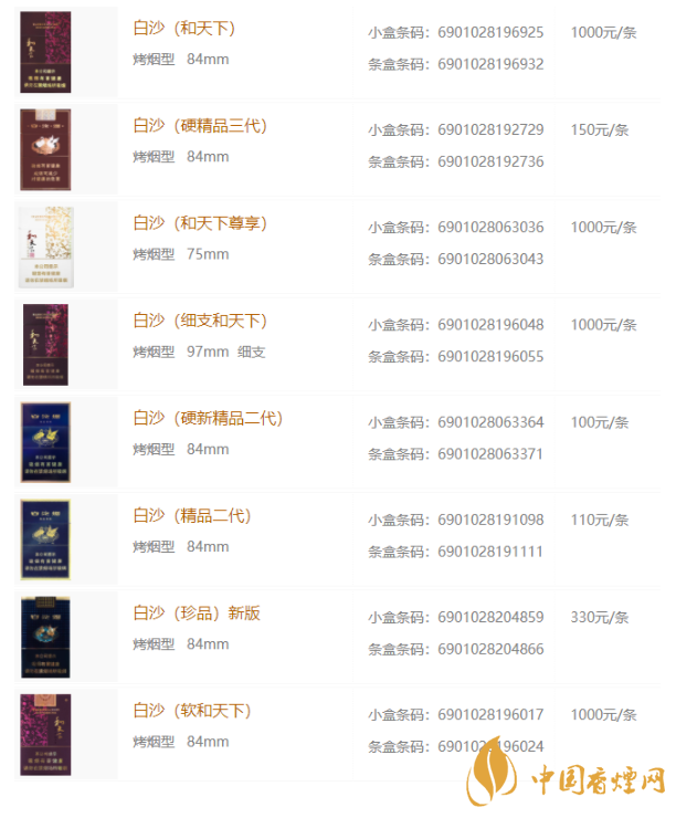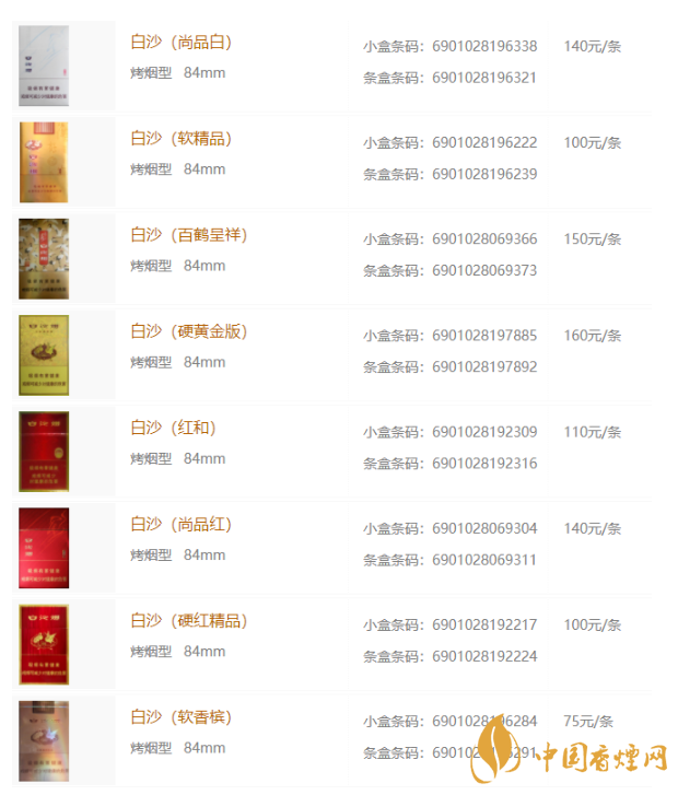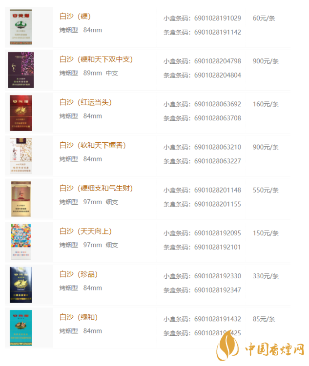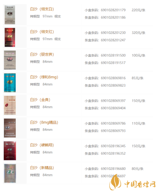 白沙香煙多少錢一包 2020白沙香煙價格表圖大全一覽