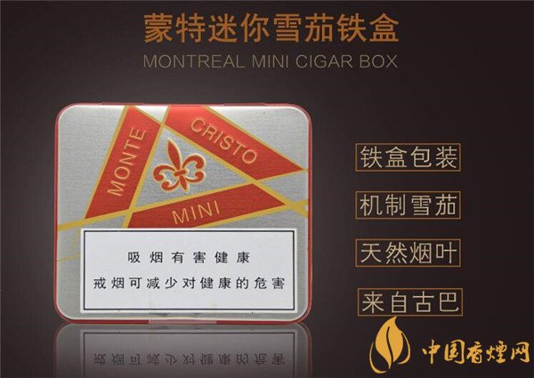 蒙特迷你雪茄鐵盒裝采用兩色系包裝,一種紅色鐵盒裝,象征著吉祥與熱情,一種是藍色鐵盒裝,象征著純凈與永恒。它是一款機制型的雪茄煙,它精致小巧的煙身,加入了特制的香料成分,它嬌小的茄身散發(fā)出一種不一樣的新風(fēng)味。那么這款古巴雪茄多少錢一盒呢,下面就由香煙網(wǎng)小編來為大家介紹一下蒙特迷你雪茄10支價格表圖。