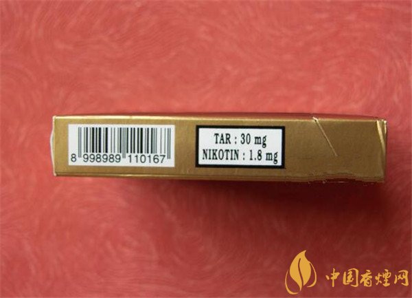 | 類型 :烤煙型 | 焦油量 :30mg | 煙氣煙堿量 :1.8mg | 一氧化碳量 :12mg |