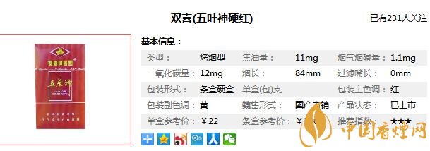 五葉神卷煙品牌作為中國高檔烤煙型卷煙品牌,創(chuàng)立于1999年,以先進的科學(xué)技術(shù)為依托,以升級中國卷煙品質(zhì)為己任,贏得了消費者的認同,那么在對五葉神香煙價格圖片進行分析之前,先來看一看這款五葉神2000多少錢一包,五葉神2000其實就是現(xiàn)在的雙喜五葉神硬紅,它的零售價為22元/包。