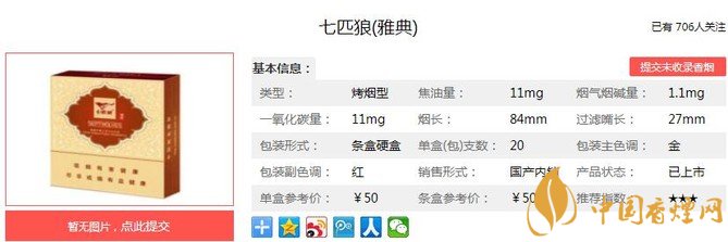 承四百年福建煙葉一脈清香,七匹狼雅典手工精選上好永定煙葉,更配以獨特WDR異型濾棒,高效過濾,凈化口感,呈獻(xiàn)飄逸透發(fā)、清雅致醇的吸食享受。煙如其人,七匹狼雅典恰如其分的綿醇清雅,尤如您的人生,溫文爾雅、不疾不徐、從容不迫的生活哲學(xué)與七匹狼雅典品質(zhì)之道交相輝映,雅士之選,典范之作。經(jīng)香煙網(wǎng)小編市場調(diào)查七匹狼雅典售價為50元/包。