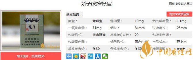 三、嬌子寬窄好運(yùn)香煙參數(shù)