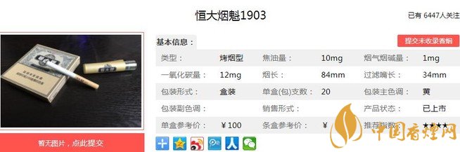 1948年,為慶祝中國(guó)恒大企業(yè)公司的成立,東亞煙草廠創(chuàng)立了“恒大”牌香煙,并委托天津華中印刷事務(wù)所的著名設(shè)計(jì)師陳嘉祥設(shè)計(jì)了“恒大”牌煙標(biāo)。1956年,恒大煙草廠并入天津卷煙廠。“恒大牌”卷煙成為天津卷煙廠的主打產(chǎn)品。下面就由香煙網(wǎng)小編帶大家一起來(lái)了解恒大煙魁1903的相關(guān)信息。
