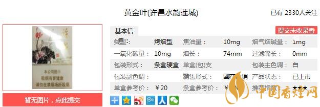 以上便是由香煙網(wǎng)小編為大家介紹的關于黃金葉許昌水韻蓮城價格 水韻蓮城口感及參數(shù)介紹的相關信息,想要了解更多有關內(nèi)容請點擊:非賣版12支裝低焦油中華香煙包裝欣賞及口感測評