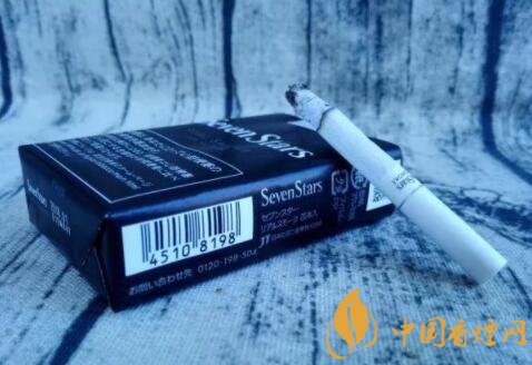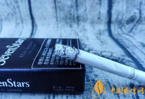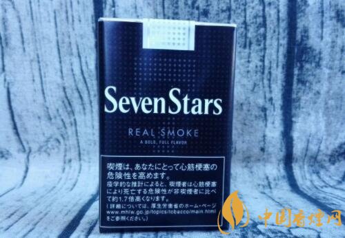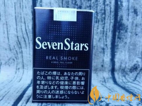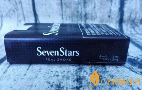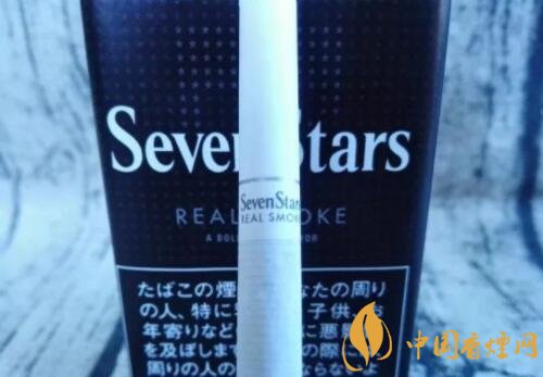 煙盒的正反及左右兩側(cè)均以白色的小五角星為圖案,橫平豎直地排列開來。與其它Seven Stars版本一樣,位于煙盒正反兩面中間都有阿拉伯?dāng)?shù)字“7”的標(biāo)識(shí)。REAL SMOKE,直譯成中文是“真煙,真正的香煙”之意。A BOLD FULL FLAVOR,中文意思是“煙味十足”。綜合意思,是說此款日稅黑七星的品質(zhì)之高。