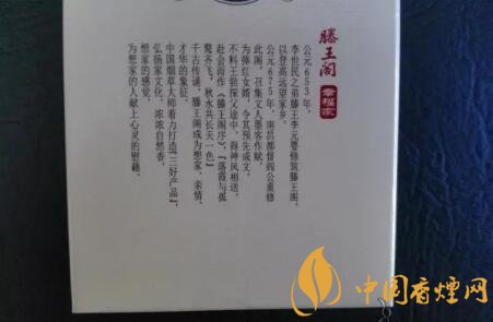 整體的包裝設(shè)計(jì),類似于純白皮版本。王子安的名句“落霞與孤鶩齊飛,秋水共長(zhǎng)天一色”,赫然印制于煙盒正面。