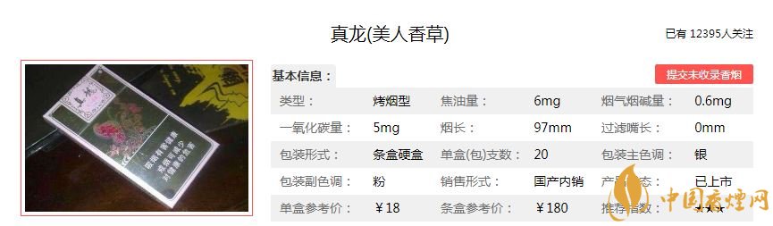 真龍美人香草,作為女士香煙,可謂是設計的十分周到,不光采用低焦設計,還有淡淡的薄荷香氣十分清涼,包裝時尚精致,亦可以當鏡子使用?;ㄏ銤庥簦鍥鍪孢m,味道非常好,值得一品。經(jīng)調查真龍美人香草售價為18元/包。