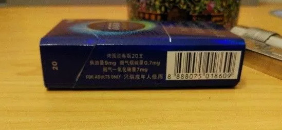 555香煙雙冰三項理化指標分別為:焦油含量9毫克,煙堿量也就是尼古丁含量為0.7毫克,一氧化碳7毫克。另一側(cè)寫標注了它的身份信息,中煙英美授權(quán),印尼產(chǎn),國際條形碼為888開頭,為555亞洲品牌注冊地,也是英美的亞洲總部新加坡。