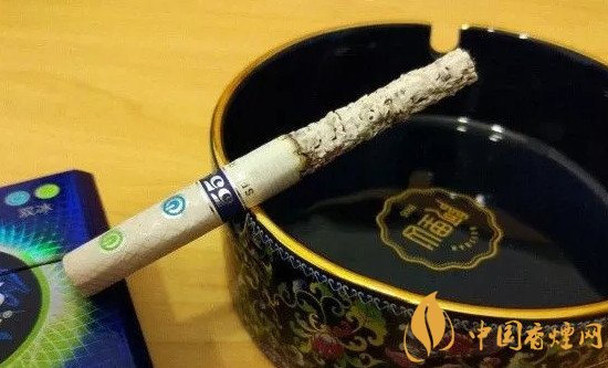按滅第一根的煙頭我又好奇的點燃第二支,這次我不打算捏藍色爆珠,忽略前段寡淡的吸味,隨著吸食的進度煙氣漸濃,遺憾的是由于薄荷味道的攪局,沒有感受到特別明顯的英烤特征,不過煙氣仍然有英烤那特有的生硬之感。由于煙絲的填充較為了飽滿,所以吸阻相對較大,但持灰良好,吸食到三分之一處,捏碎綠色爆珠,煙灰仍然屹立不倒,不折不彎筆挺如初。