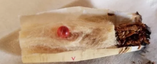 點燃一支,正常抽吸兩口之后,捏破爆珠。靜候2、3秒,讓爆珠成分浸潤絲束,再抽吸時,吸阻略微降低了一些。據(jù)說爆珠萃取自香格里拉所產(chǎn)的雪山苷草,捏爆后煙氣自然甜潤,增添煙氣的層次感。剖開濾嘴,是整段式的醋酸纖維絲束,濾嘴沒有降焦孔,絲束的顏色淡黃,顏色變化從煙絲端到吸入端,均勻變化、色差很小。這個根據(jù)賞玩品吸時的感受,這樣的濾嘴結構在吸阻偏大的同時并沒有影響到煙氣的質(zhì)量,就比較難得了。
