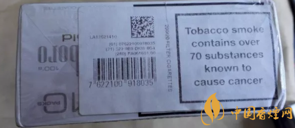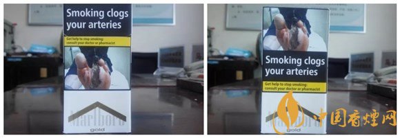 警示圖片的內(nèi)容,與84S紅或白等相同。從樣式上可以看出,它也是一款新版萬寶路。與84S系列相同的,是因?yàn)樽屛挥诰緢D片,黑框警示英文字句,轉(zhuǎn)而移到煙盒的左右側(cè)面。#p#副標(biāo)題#e#