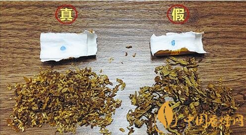 假冒:煙絲雜亂、切工粗糙、色澤蒼白,甚至發(fā)現(xiàn)了染色的紙屑。沒有烤煙香氣,更多的是青澀的煙葉味道。