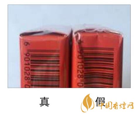 真煙的三個(gè)小方格中,下面那個(gè)方格的最下面那一橫為水平的;假煙下面那個(gè)方格的最下面一橫非水平,呈一定角度傾斜。