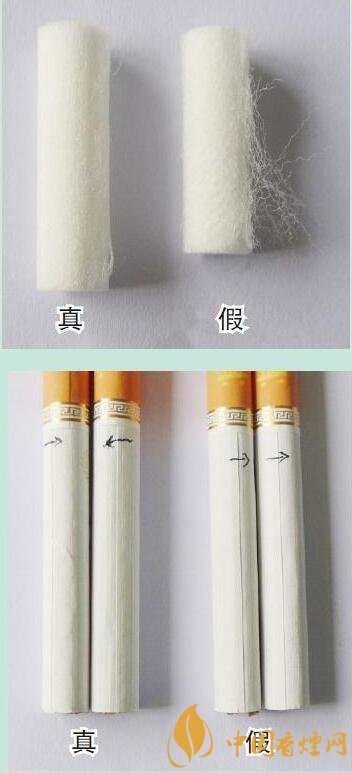 真煙商標(biāo)紙邊緣整齊、無明顯毛邊;假煙商標(biāo)紙邊緣明顯毛糙、白色纖維外露。