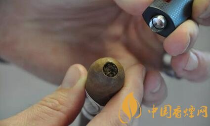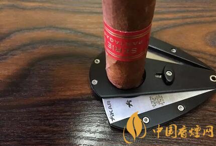 可以有一個(gè)方法是將雪茄剪平放到桌面,再把雪茄倒立放到切口里面,這樣就能夠剪出水平的切口了。