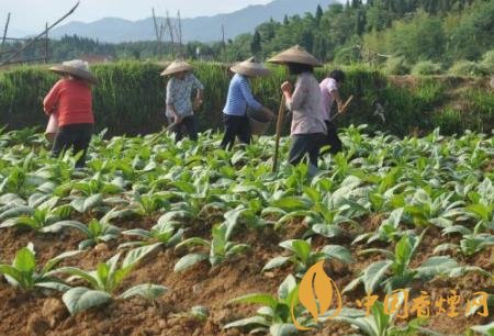 3、追肥:①追肥時(shí)間,要求各村追肥,除麻沙泥田,潮沙泥田和黃沙泥田可留30—40斤煙草專用肥,全部的硝酸鉀,煙草專用肥分別在移栽后10—15天(扒兜),20—25天,30—35天(培土)分2—3次煙株兩側(cè)環(huán)穴干施(雨水多時(shí))或環(huán)穴澆施(雨水少時(shí))完,硫酸鉀可在培土后兌水澆施;②補(bǔ)肥:栽后50天內(nèi),降雨量的大小,是決定是否該補(bǔ)肥的關(guān)鍵,一般伸根期雨較多的年份或團(tuán)顆期短于30天的田塊,可在培土后增施專用肥或硫酸鉀10—15斤,要求補(bǔ)肥必須在栽后45天內(nèi)補(bǔ)完,打頂后不得補(bǔ)施含氮肥料。