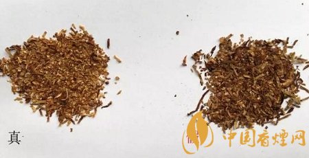 真煙煙絲結(jié)構(gòu)為葉絲,膨脹葉絲,造紙法再造煙葉。假煙煙絲色澤較暗,缺乏油分較干燥,假煙主要識(shí)別點(diǎn):假煙可見(jiàn)膨脹梗絲,真煙沒(méi)有。