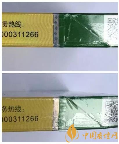 真品卷煙鐳射防偽標志中的圖案清晰、完整, “荷花”兩字立體感強,用放大鏡觀察可看到清晰的“HEHUA”微縮字體;假煙鐳射防偽標志中的圖案模糊且不完整,“荷花”兩字粗糙、死板,用放大鏡觀察“HEHUA”微縮字體很模糊。