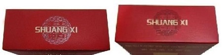 如圖所示:真品商標(biāo)紙顏色為深紅色,正面喜字燙金邊緣凸起感明顯;假煙商標(biāo)紙顏色多為鮮紅色,正面喜字為平版印刷且邊緣未見凸起感。(左真右假)