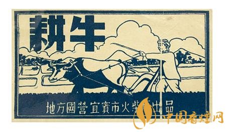 此后的50年代,地方國營宜賓市火柴廠出品的“耕牛”(圖2)火花,突出了一名少數(shù)民族農(nóng)夫右手扶犁,左手拿著牛鞭驅(qū)趕牛兒加油翻耕農(nóng)田的場景。
