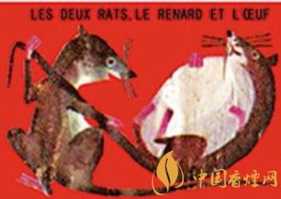 法國著名煙草經(jīng)銷機構(gòu)塞塔公司推出過系列伊索和拉封丹寓言卡通火花,其中的“鼠火花”內(nèi)容詼諧,十分有趣?!峨p鼠、狐貍和雞蛋》(圖二)讓外界不要低估老鼠的智慧。狡猾的狐貍原本認定老鼠搬不了雞蛋,不料兩個耗子狡黠協(xié)作,一個躺倒抱住雞蛋的同時直接讓伙伴拽拉著它的尾巴,彼此安然回洞!《老鼠和牡蠣》(圖三)是說被誘惑和貪婪的后果很嚴重:內(nèi)陸之鼠初到海邊,看到張殼做日光浴的牡蠣新奇不已,竟一頭伸進殼中欲以秀色為餐,結(jié)果……即刻就要閉合的美艷景色不會免費?。?/p>